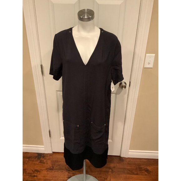 By Malene Birger Black Studded V-Neck Shift Dress, Size 6 (US) 38 (FR) NWT!