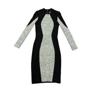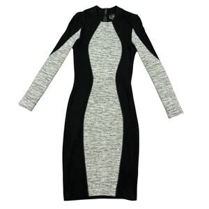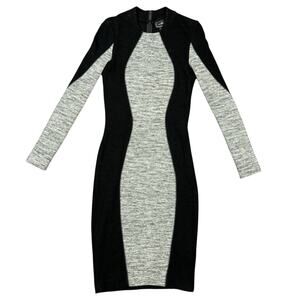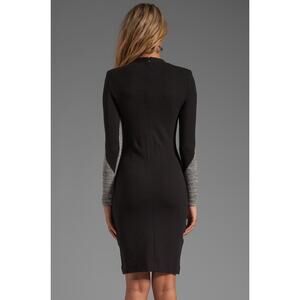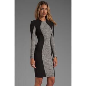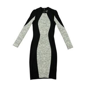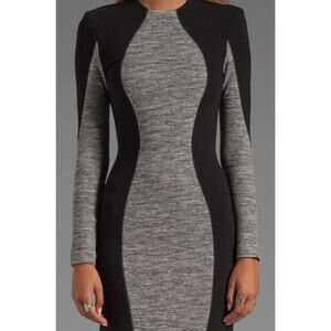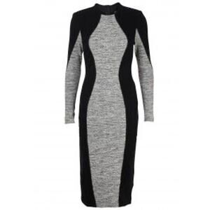 Long-sleeve bodycon dress in black with a grey central panel