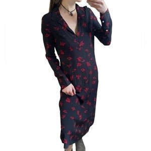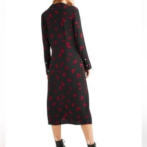 By Malene Birger NEW Botall Printed Crepe Long Sleeve Midi Dress Black 36, XS/0
