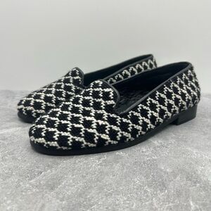 By Paige Black White Classic Needlepoint Slip On Loafer Size 6.5 Upper Wool