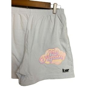 This item is a brand new pair of By Samii Ryan "Try Again" Light Baby Blue Sweat Shorts Size Small NWOT. These shorts are cute and fun. They are a classic sweat short with "Try Again" on them.