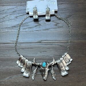 By The Bay NY Necklace/Earring Set,bull head, silver tone,faux turquoise stones