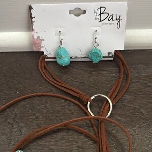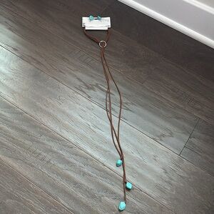 By The Bay NY Tassel Lariat necklace,suede like cord w/3 faux turquoise stones