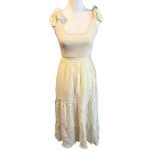 By The River Anthropologie Tiered Lined Bow Tie Midi Dress Size Small Ribbed