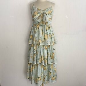 By The River Floral tiered, spaghetti strap, smocked back maxi dress Large NWT