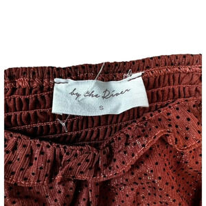 This beautiful dress by By The River features a solid pattern with brown and black dots, short balloon sleeves, and an off-the-shoulder neckline. The dress is made of lightweight chiffon fabric and is lined for comfort. It has a pullover closure and is smocked for a flattering fit.
