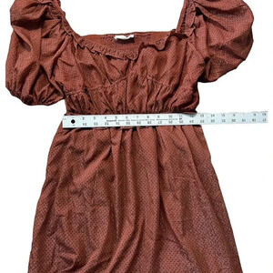 By The River Puff Sleeve Brown Black Dots Short Dress Off Shoulder Size Medium