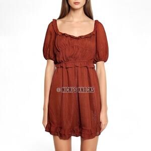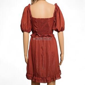 By The River Rust Polka Dot Mini Dress Puff Sleeve Ruffle Fit Flare Fall Size S