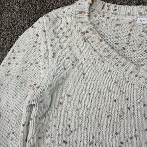 By The River Women's Sweater Large Cream Crochet Confetti Preppy Fun Cozy Cabin