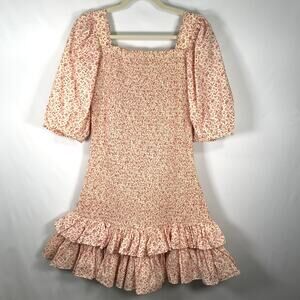 By TiMo Dress Womens Large Cream Pink Mini Ditsy Floral Smocked Ruffle Twee Boho