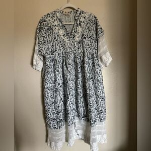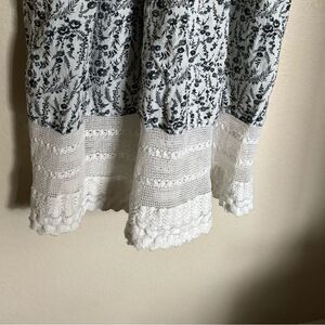 By Timo Floral Boho Embroidered Poplin Midi Dress Sz Medium Crochet Lace Trim