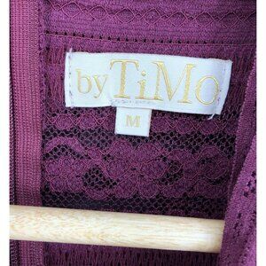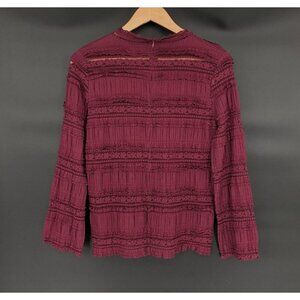 By Timo Womens Lace Long Sheer Sleeve Top M Burgundy Boho Chic Bohemian Western