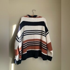 By Together Chunky Knit Cowl Neck Striped Sweater Womens Size S/M Oversized boho