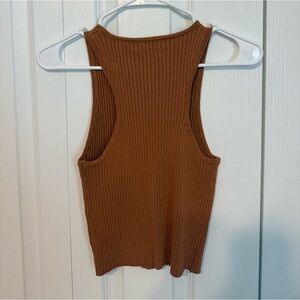 Stylish cinnamon ribbed tank with button-front. Ideal for layering or casual wear.
