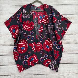 By Together Floral Open Front Kimono Top Womens Medium Gray Red Purple