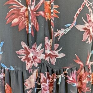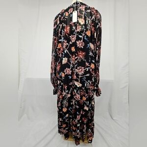 By Together Floral Semi Sheer Drop Waist Maxi Dress in Black Size L NWT