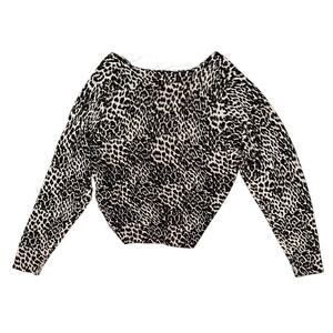 By Together Leopard Print Off The Shoulder Cropped Sweater Women's Small