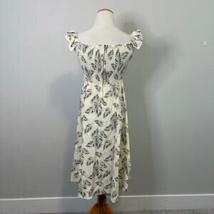 By Together Sleeveless Midi Dress Ruffle Neckline Button Palm Print - Small