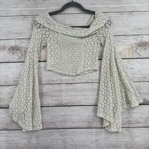 By Together Sweater Women's Small Ivory Lace Bell Sleeve Boho Cropped Romantic Top