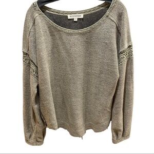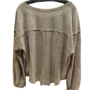 By Together Tan Frayed Edge Scooped Neck Sweater Oversized Sz S