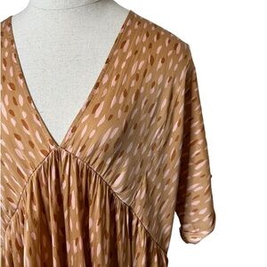By Together Vici Orange Boho Dot Print V Neck Mini Short Sleeve Dress Medium