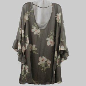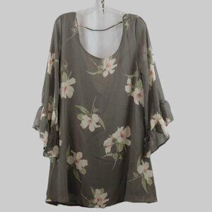 By Together Womens Gray Floral Ruffle Bell Sleeve Sz L