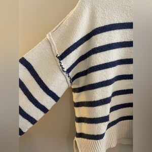 By Together from Anthropology Cream with Navy Blue Stripes Sweater