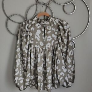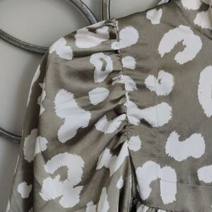 Fun animal print top in a silky khaki green color from By Together. Worn once with jeans!