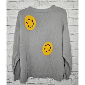 By Together women's smiley face gray yellow pullover crew cotton sweater small