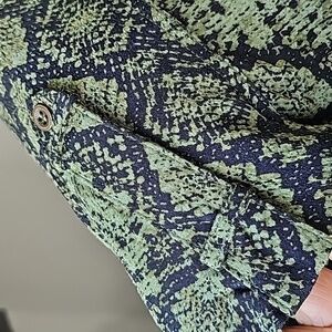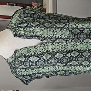 Cute shift dress.V neck. made in USA. machine wash. 100% viscose. Great used condition and quality. Size small. pit to pit flat measurement is 21". non waist. The top to bottom length is 37". Consider making a bundle and get an even better offer.