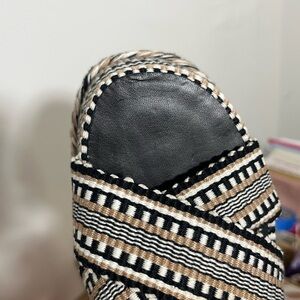 Vibrance is key with these handmade woven sandals from Amambaih, featuring thick criss cross straps on an adorned platform sole, finished with optional braided lace-up straps for a statement moment.