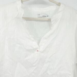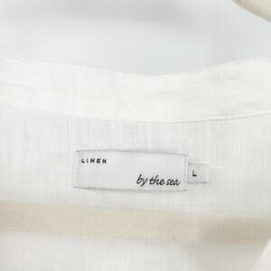 By the Sea Womens Beachy Coastal Lagenlook 100% Linen Long Sleeve Blouse in White. Size Large.