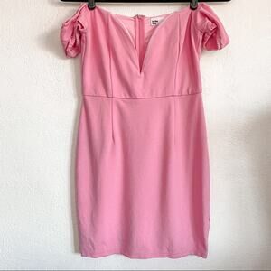 Off the shoulder cap sleeve plunge neck mini dress from By The Way. Gorgeous rose pink. Back zipper. Boning at the bust offers structure.