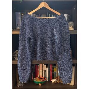 By Anthropologie Blue Metallic Eyelash Pullover Sweater Size Small