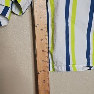 Stylish shorts with white, green, and blue stripes. Perfect for casual wear. By Anthropologie Boxy Bermuda Shorts Medium Striped White Blue and Green in excellent condition