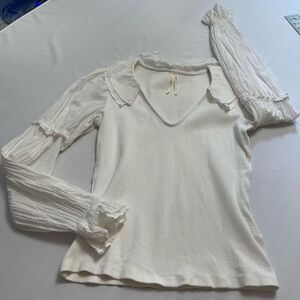 By Anthropologie Ruffled Ivory Blouse Top Ribbed Long Sleeve Ivory Size Small
