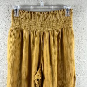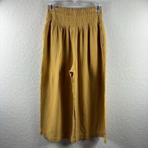 By Anthropologie Smocked Gauzy Wide-Leg High Rise Pull-On Pants Mustard Yellow