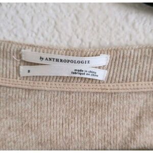 This Anthropologie Wrap Tie Cardigan Sweater in size small is a stylish and versatile addition to any woman's wardrobe. The V-neck neckline and tie waist accents give it a trendy touch, while the oversized and breathable design make it perfect for casual or travel occasions. Made from a mix of spandex, nylon, and viscose, this tight-knit sweater features raglan sleeves and a relaxed fit, ideal for the winter, fall, and spring seasons. The beige color and minimalist theme make it a classic piece that can be dressed up or down for any occasion.