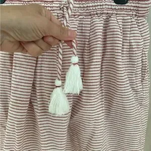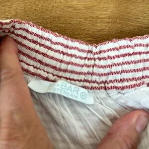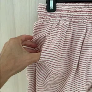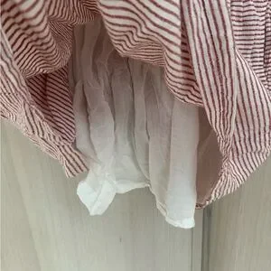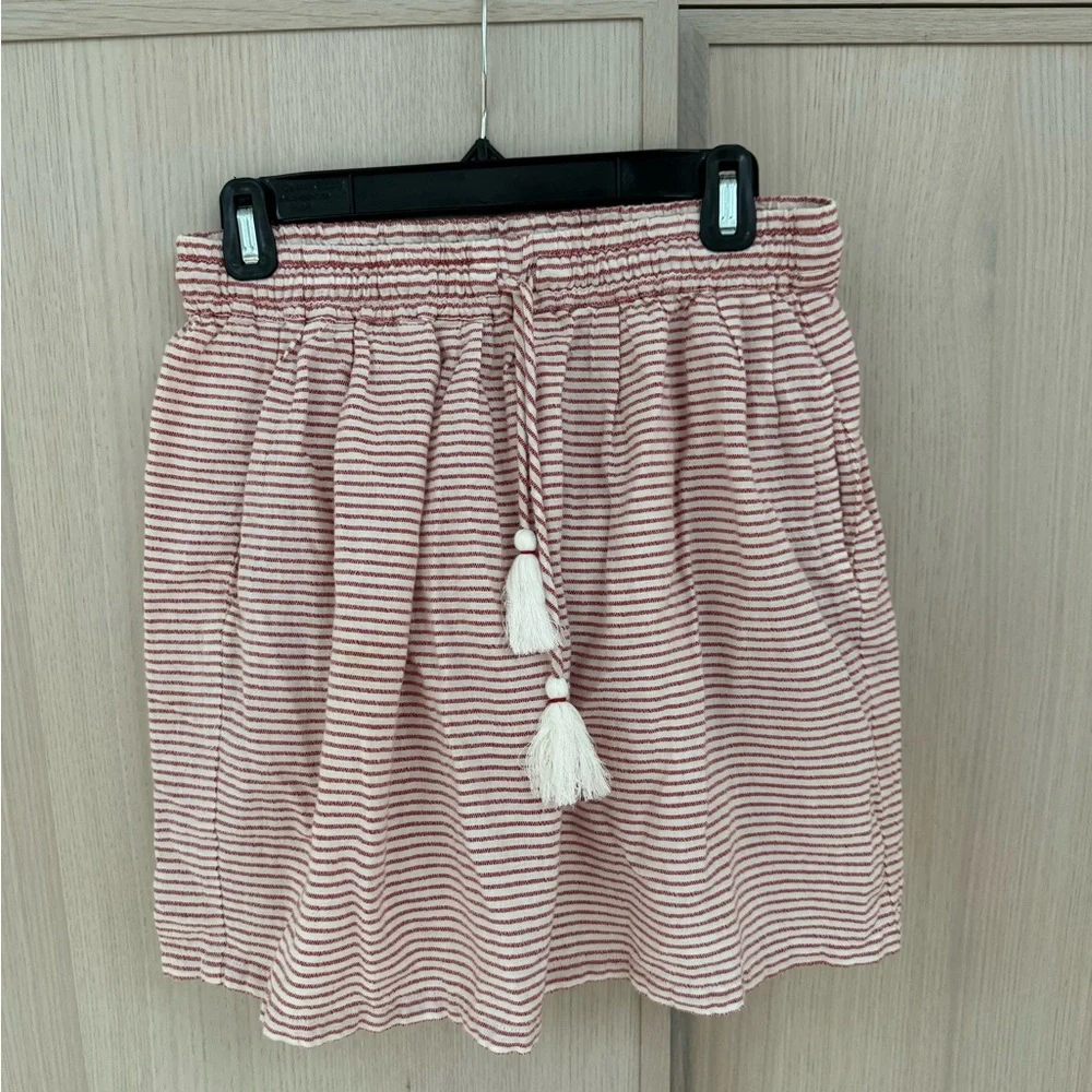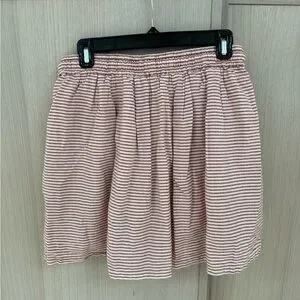 Red and white stripe lined skirt. Elastic waist and in very good condition Length 17 Waist laying flat 13 The red is a warmer not super bright