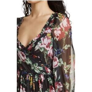 ByTIMO BLACK MULTI Floral Wrap Bodice Long Sleeve Chiffon DRESS SIZE L