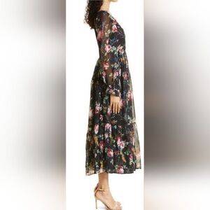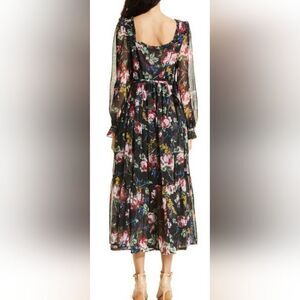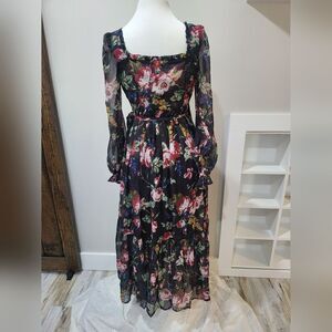 ByTIMO BLACK MULTI Floral Wrap Bodice Long Sleeve Chiffon DRESS in Rose field SIZE XS