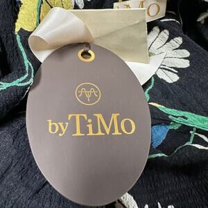 ByTiMo Women's Black Floral Bubble Crepe Blouse Daisy Size Small New With Tags
