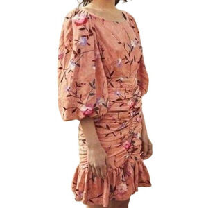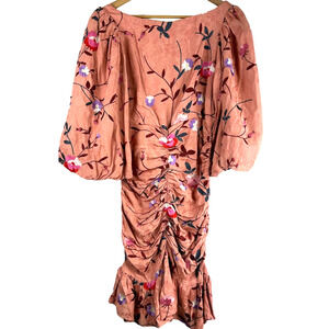 ByTiMo Ruched Floral Blush Embroidered Jacquard Dress Women's Size Large NWT