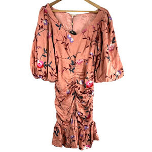 ByTiMo NWT Ruched Floral Blush Embroidered Jacquard Dress Size S Half Sleeve