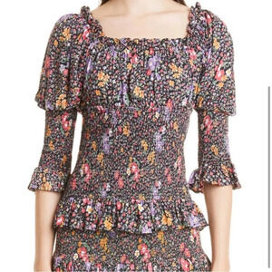 ByTiMo Tuckernuck Floral Smocked Blouse in Bright Field Black Multi Size Small