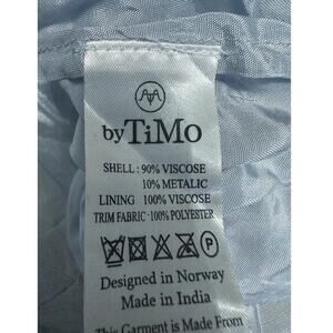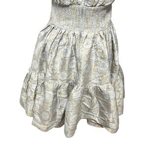 ByTimo A-Line Mini Dress Ruffled Hem Strapless Floral Brocade Blue Gold L NWOT