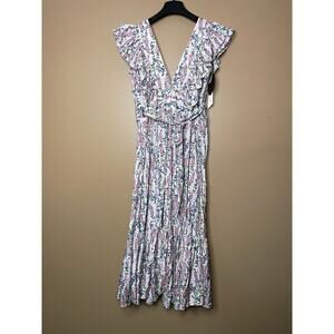 ByTimo Blue Field Floral Ruffle Midi Dress Small Cottagecore