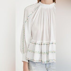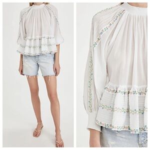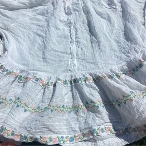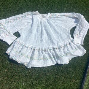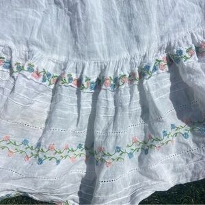ByTimo Embroidered 100% Cotton Voile Smocked Lattice Lace Peasant Top Sz S