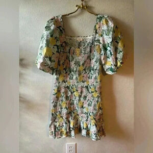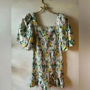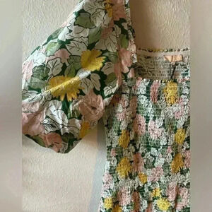 Allover smocking adds to the romantic feel of this byTiMo mini dress, which feels fresh and spring-ready with a green-tinged floral print.