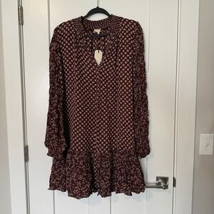 ByTimo Georgette Mini Dress NEW Burgundy Floral Print Women's Size Medium Flowy